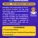 O município concorre em três categorias estratégicas: Turismo Gastronômico, Turismo de Parques Temáticos & Naturais e Turismo Rural. A escolha dos vencedores é feita por meio de voto popular, disponível no site oficial do prêmio: topdestinossp.com.br/cidades/andradina.